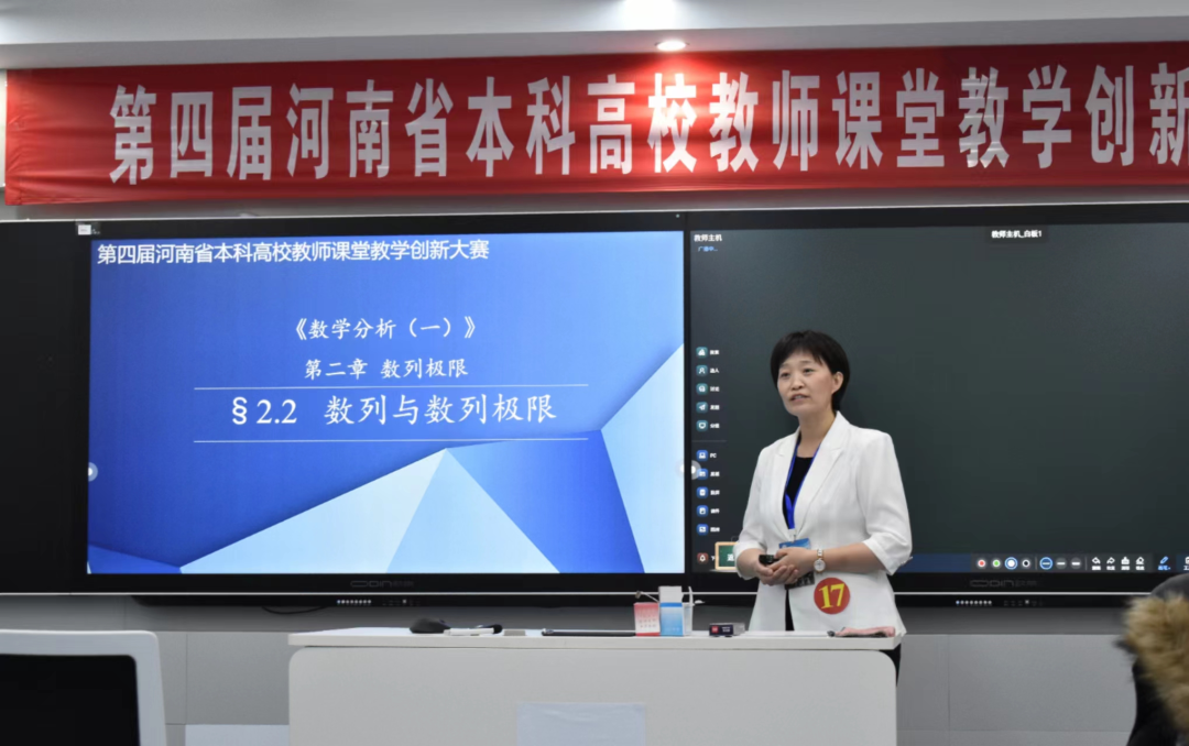 三尺讲台之上,一位老师身着白色西装,留着干练的短发,神采飞扬地讲解着“数列与数列极限”问题,她的讲解条理清晰、深入浅出,在课程结束后赢得一片掌声。她便是第四届河南省本科高校课堂教学创新大赛教授组特等奖获得者、spbo即时比分手机