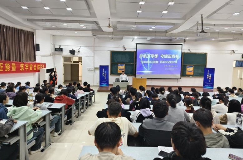 在金明综合楼6305教室顺利开展了题为《护航开学季 守望正青春 传播金融正能量 筑牢安全防护墙》的“反电信网络诈骗”讲座。