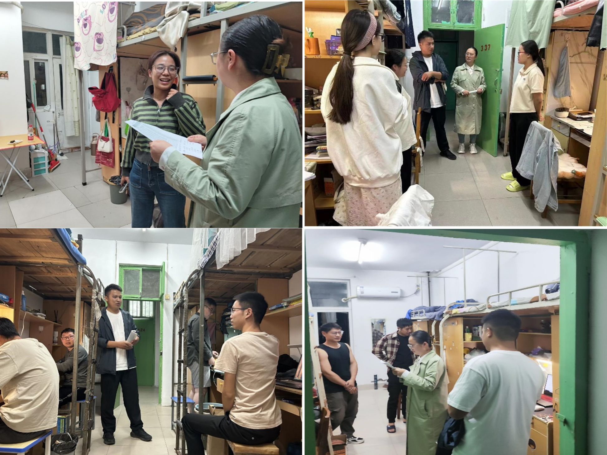 为进一步加强与学生之间的互动与沟通,关注学生的成长与发展,10月15日晚,我院研究生辅导员刘霞宇和陈顺杰老师走访了学生宿舍,面对面与同学们亲切交流,为同学们带去秋日第一份关怀与嘱托。
