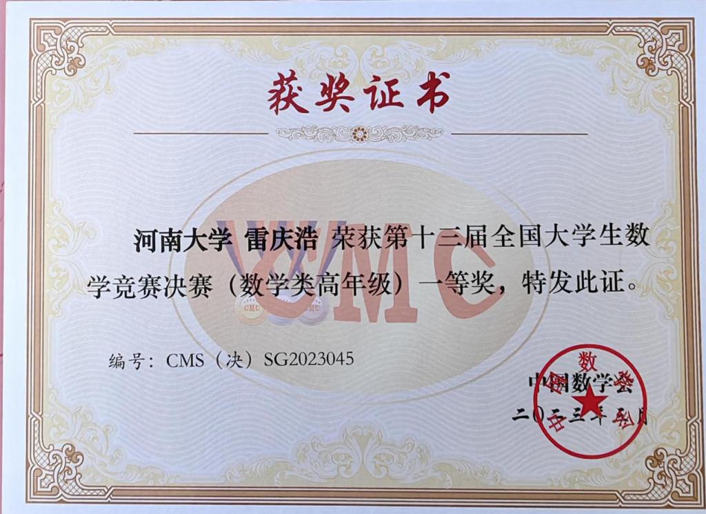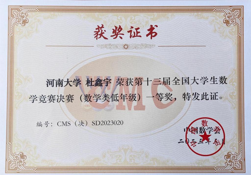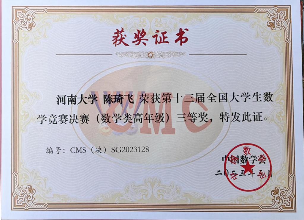 老师的悉心指导下坚持学习,努力准备,取得了优异的成绩,这离不开河大学子的辛勤努力,也离不开学校领导对学科竞赛工作的关怀与支持。我校在教学育人模式改革的道路上,始终坚持积极探索、攻坚克难,相信凭着所有河大人的持续努力奋进,我校数学学科竞赛成绩必将再创辉煌!