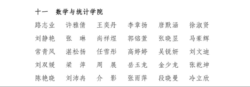 在此次表彰中,我院团委被评为“河南大学五四红旗团委”,王沛老师获得2019年“河南大学青年五四奖章”,安其丰老师被评为“河南大学青年岗位标兵”,路志业等30人获得“河南大学优秀共青团员”称号,吴璐瑶等12人获得“河南大学优秀共青团干部”称号,信息与计算科学2017级团支部、统计学专业2018级1班团支部、统计学专业2019级1班团支部共3个团支部被评为“河南大学五四红旗团支部”。