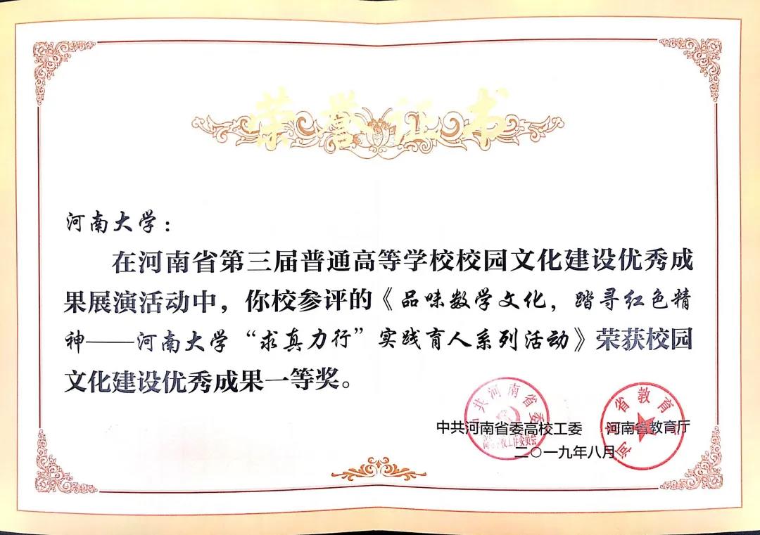 “品味数学文化 踏寻红色精神”——河南大学“求真 力行”实践育人系列活动荣获河南省第三届普通高等学校校园文化建设优秀成果一等奖