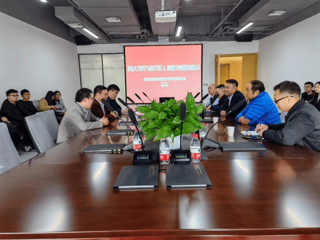 简短的签约挂牌仪式结束后,校企双方就开展合作事宜进行了座谈。王楠代表河南数字中原科技有限公司致欢迎词,并简要介绍了公司情况,希望通过此次签约,与学生实习实训、毕业生就业、共同课题研究等各方面开展深度合作、互动交流,促进双方共同发展。