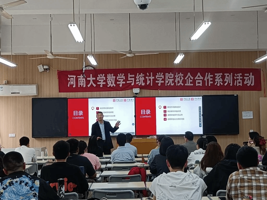 开展校企合作——行业知识培训活动,在金明综合楼3103教室为金融数学专业学生做了一场题为《期货套期保值的理论、操作及应用》的精彩讲座。spbo即时比分手机