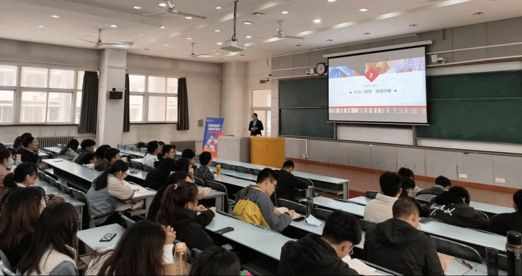 部分本科生和研究生开展了防诈骗专题知识讲座。她介绍了电信诈骗的常见套路,如何应对骗局以及被诈骗后应采取的措施,她还通过鲜活的案例提醒学生要警惕“校园贷”,要树立正确的消费观念,尽量避免使用网络借贷工具,重视个人信用,提高风险防范意识。