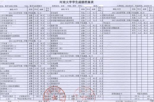 图七 二0一四年级数学与应用数学专业学生成绩表