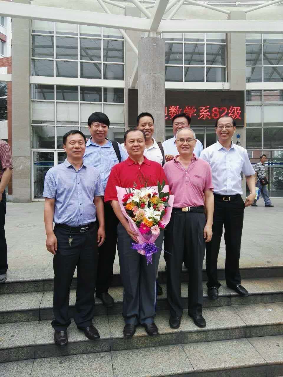 如果不是当年报考了数学系,如果不是天天被《数学分析》课程中那枯燥而又难解的作业题所困扰,也许我一生都不会知道吉米多维奇这个名字。吉米多维奇,白俄罗斯籍数学家,生于1906年,毕业于白俄罗斯国立大学物理与数学系,曾任莫斯科大学数学分析教研室教授,并荣获苏联最高苏维埃颁发的功勋科学家称号。其著《数学分析习题集》,是一本国际知名的著作,也是众多数学专业莘莘学子的必备工具书。正是这本著作,成为自己完成《数学分析》课程学分的重要帮手。河大数学系当年的《数学分析》授课老师是胡雁军,辅导老师是刚从北京大学数学系毕业的青年才俊赵大蕻。胡雁军老师是个女同志,四十多岁,中等身材,皮肤白皙,为人谦和,热情大方,对教学工作精益求精,一丝不苟。不论是课堂上还是课间休息时间,只要同学们有需要请教的时候,她都会耐心细致、不厌其烦地、一遍又一遍地给与讲解,直到完全弄明白为止。她的优良师德和严谨学风,为我们全年级同学树立了榜样。回忆自己走过的路,我常常在想,大学四年,从书本上学到的知识也许会随着时间的推移而渐渐淡忘,但在校期间各位大师的为人师表和严谨治学精神却是我们一生用之不竭的财富。时任辅导老师赵大蕻,年轻帅气,学识渊博,品德高尚,为人低调,大学毕业时,果断放弃北上广等繁华大都市回到家乡工作,用自己的青春和汗水来回报哺育他、培养他的中原大地和父老乡亲。作为《数学分析》课程辅导员,晚上自习时间,他从来不休息,要么是认真批改作业,要么是和同学们一起在教室共解难题。每当同学们有什么问题,他总是循循善诱、不厌其烦反复讲解,确保班上每一个同学都不掉队。听留校的同学讲,赵老师后来即使担任了数学系党总支书记、河南大学党委办公室主任、河南财经政法大学党委副书记等领导职务,也一直保持艰苦朴素、勤奋好学、乐于助人的优良品质,坚持学术和校务工作两不误,赢得了全校师生的一致好评。岁月飞逝,当2016年我们82级同学毕业三十年回到母校聚会时,胡雁军老师已进入耄耋之年;当年的帅小伙赵大蕻老师也已退休,且两鬓染了白霜,但精神状态很好,显得更有魅力、更练达、更具有亲和力。