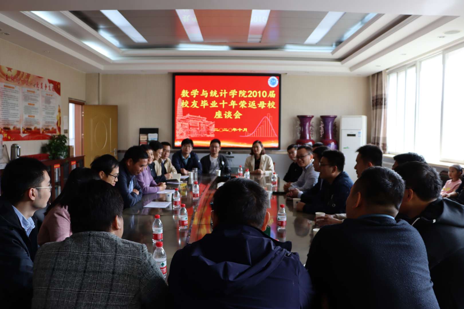 二楼会议室,举行2010届校友返校座谈会。出席会议的有党委书记史富强、院长冯淑霞、副院长解俊山、2010届辅导员狄丽娜以及20多位校友代表。会议由党委副书记赵红磊主持。