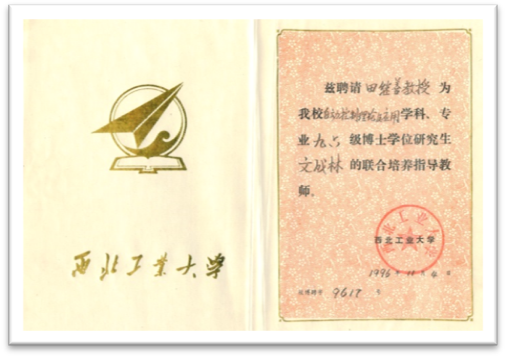 西北工业大学博士生导师聘书