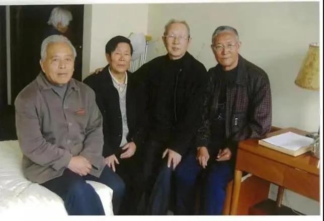 刘光耀先生(右一)与户传平、赵振海、王建平走在明伦校区主干道上