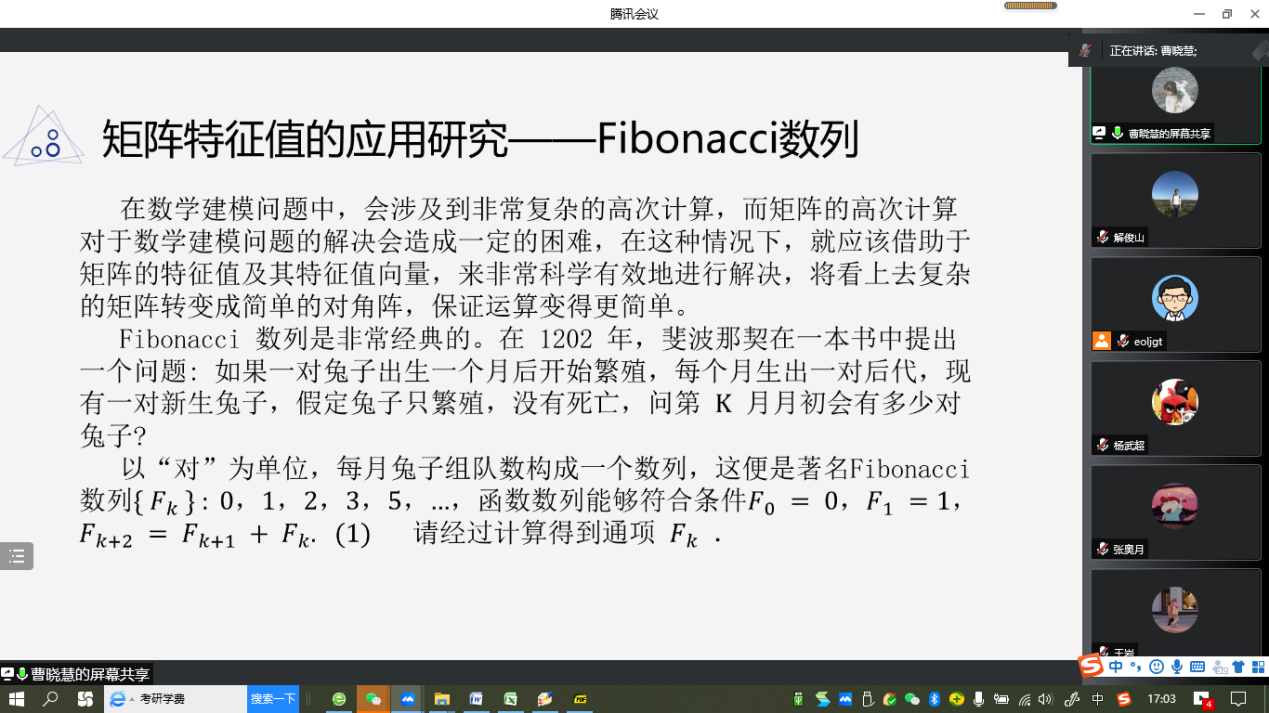 7月16日下午,河南大学“明德计划”数学与应用数学专业2019级实验班举行学术交流活动,活动在线上腾讯会议平台进行。spbo即时比分手机
