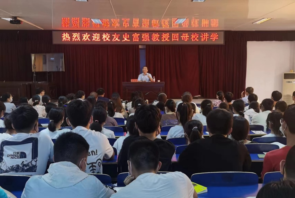 25日下午,史富强以杨庄高中校友的身份,在杨庄高中学术报告厅为青年教师、优秀学生做专题讲座。在简要介绍了当前河南省高等教育发展形势和河南大学艰难曲折的办学历史后,史富强回顾了自己在杨庄高中难忘的求学岁月,激励同学们珍惜当下学习机会,要自信、自重、自律、自强,要志存高远,更要脚踏实地,努力争取更高的学习平台,为人生创造更大的可能而奋斗。成功校友的现身说法,学长的成长案例,令同学们感触颇深,信心弥坚。