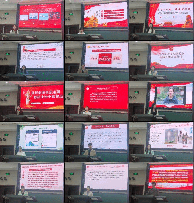 本次活动由党支部组织委员张慎博同志主持,主持人介绍了活动流程和评分标准后,活动正式开始。本次活动由15组党员代表分别围绕党的二十大报告15个方面进行深刻宣讲和详细解读。宣讲内容主题鲜明、视野开阔、分析透彻、深入浅出、重点突出,既有政治高度,又有理论深度、实践厚度,展现了新时代青年党员扎实的理论基础。